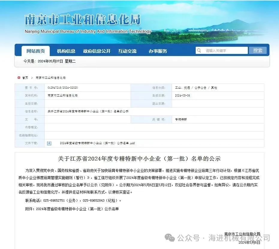 • 海進(jìn)機(jī)械榮獲“2024年度省級(jí)專精特新中小企業(yè)”認(rèn)證